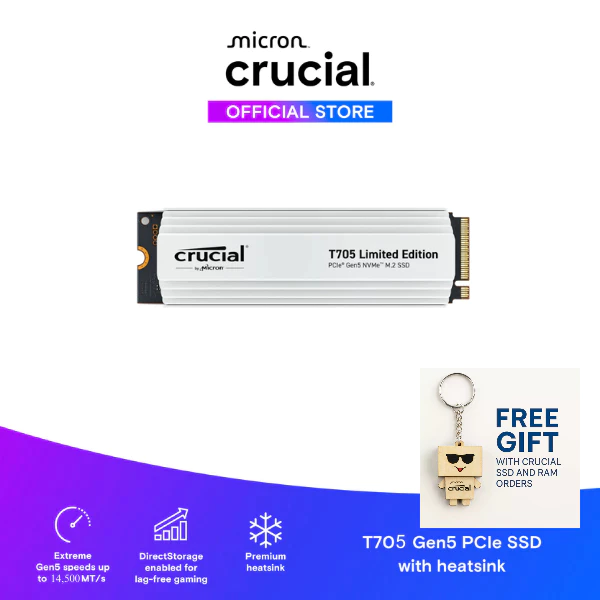 CT4000T705SSD5A Crucial T705 SSD with limited edition white heatsink M.2 PCIe NVMe