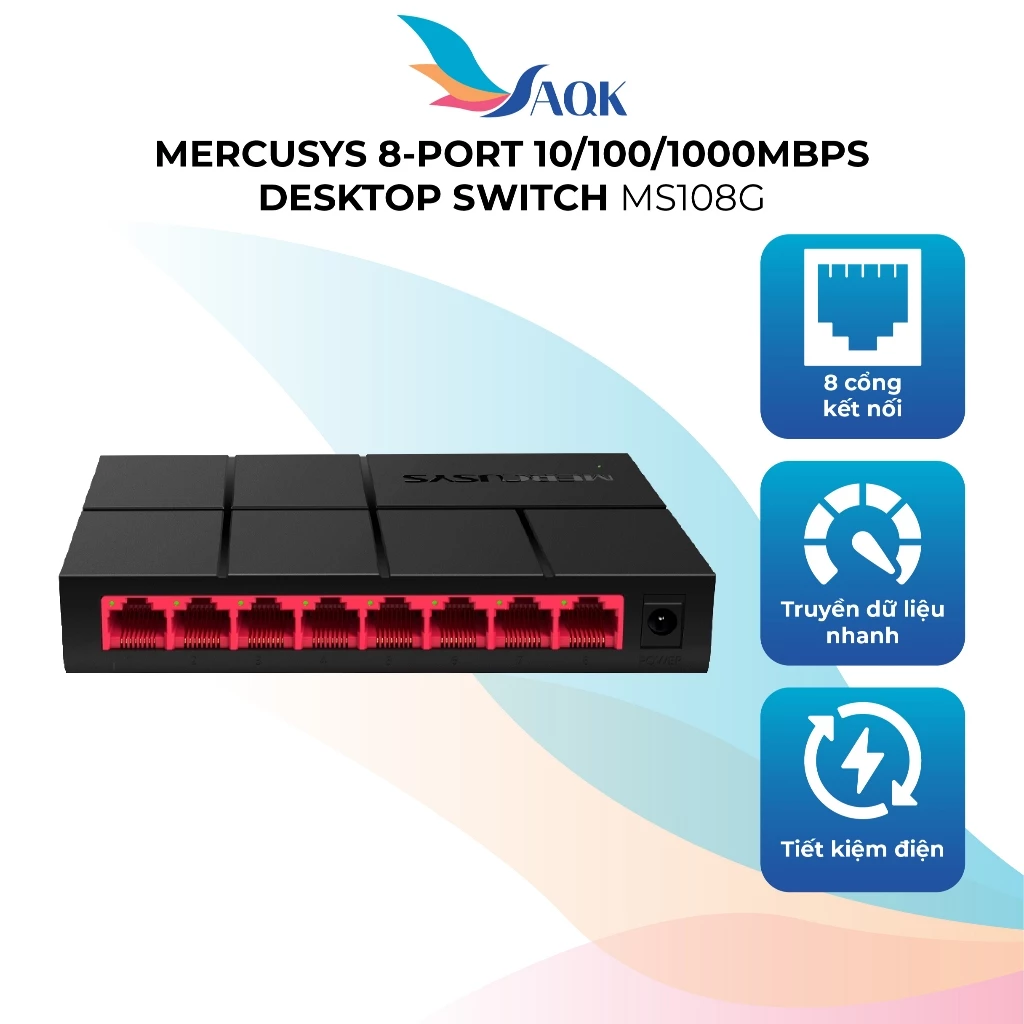 Bộ chia mạng switch 8 cổng Mercusys MS108 10/100Mbps