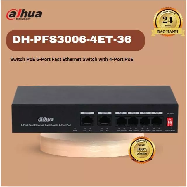 Switch POE 6 cổng tốc độ cao DAHUA DH-S3006-4ET-36, 4 cổng POE với tốc độ 100Mbps