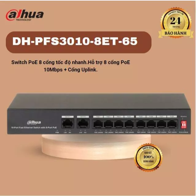 Switch PoE 8 port DAHUA DH-CS4010-8ET-60, dahua poe 16p DH-CS4218-16ET-135