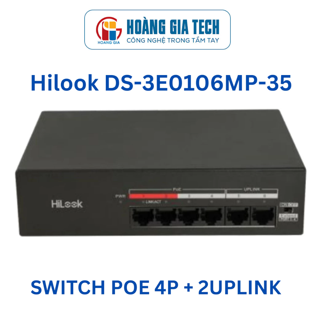 Switch POE Hilook 4 Port POE 2Uplink DS-3E0106MP – 35 dùng cho camera hoặc wifi