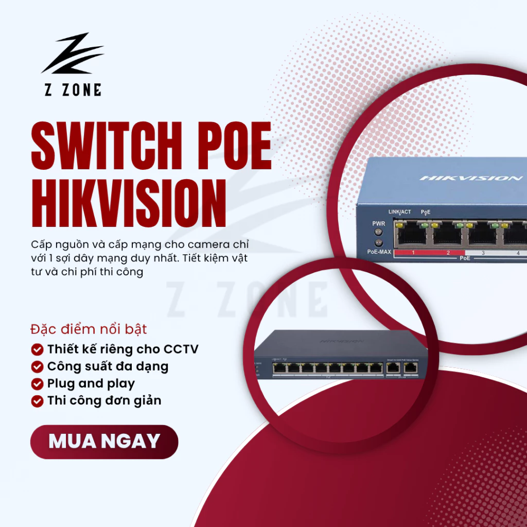 Switch Mạng Thông Minh 4/8 Cổng PoE Hikvision – Quản Lý Mạng Dễ Dàng, Cấp Nguồn Tiện Lợi